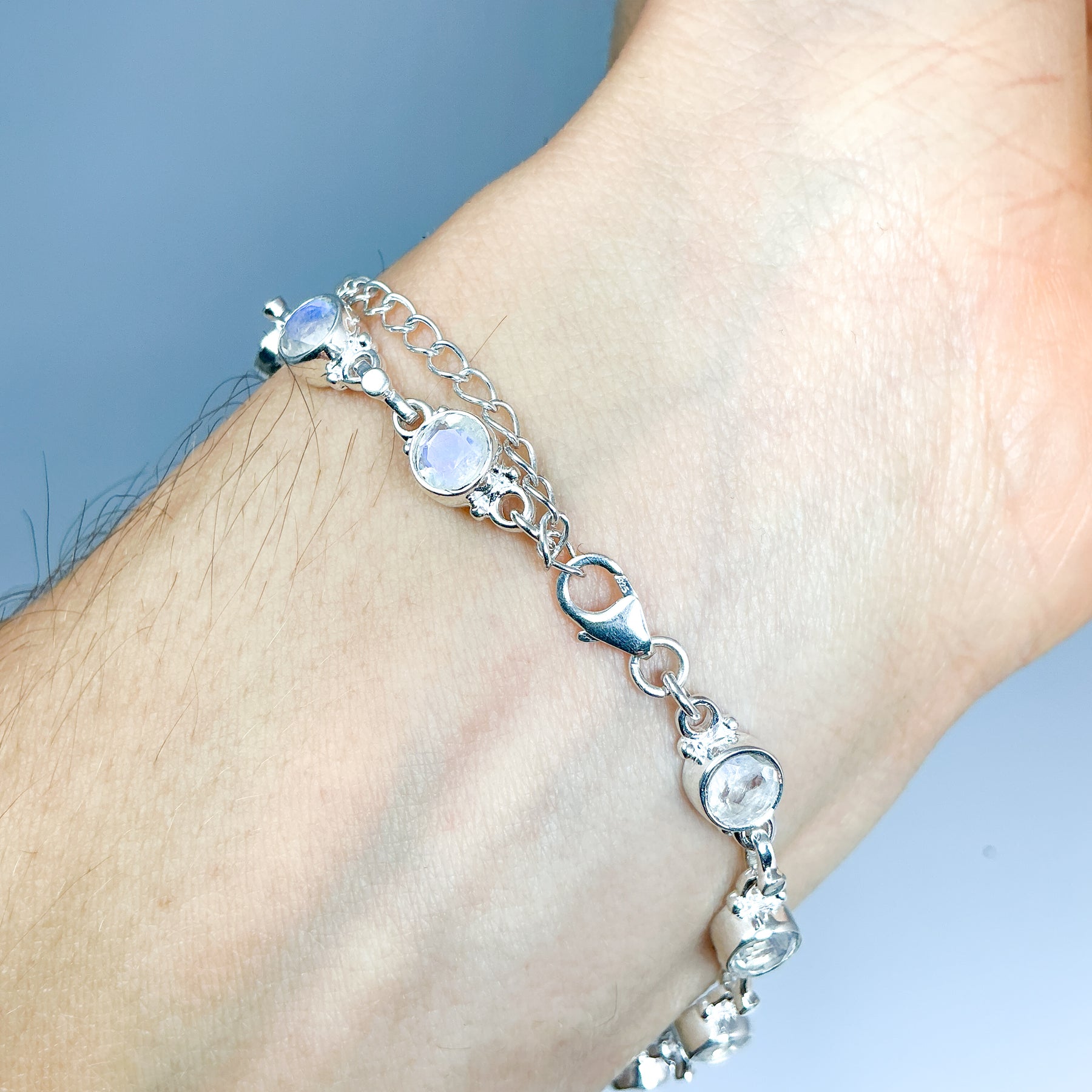 Rainbow Moonstone Sterling Silver Bracelet