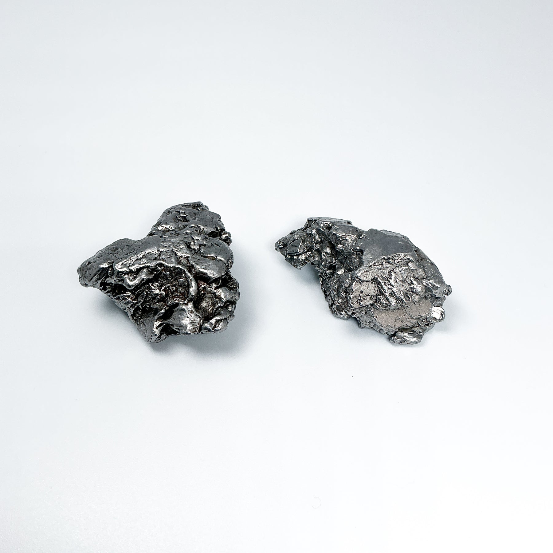This meteorite has a unique crystallization known as the Widmanstatten crystal structure. These lines are shown as a unique etched pattern on the meteorite. This pattern is the result of the meteorite cooling in outer space over billions of years. Although not as finely detailed as other meteorites, these pieces still display this pattern when cut and etched with acid.