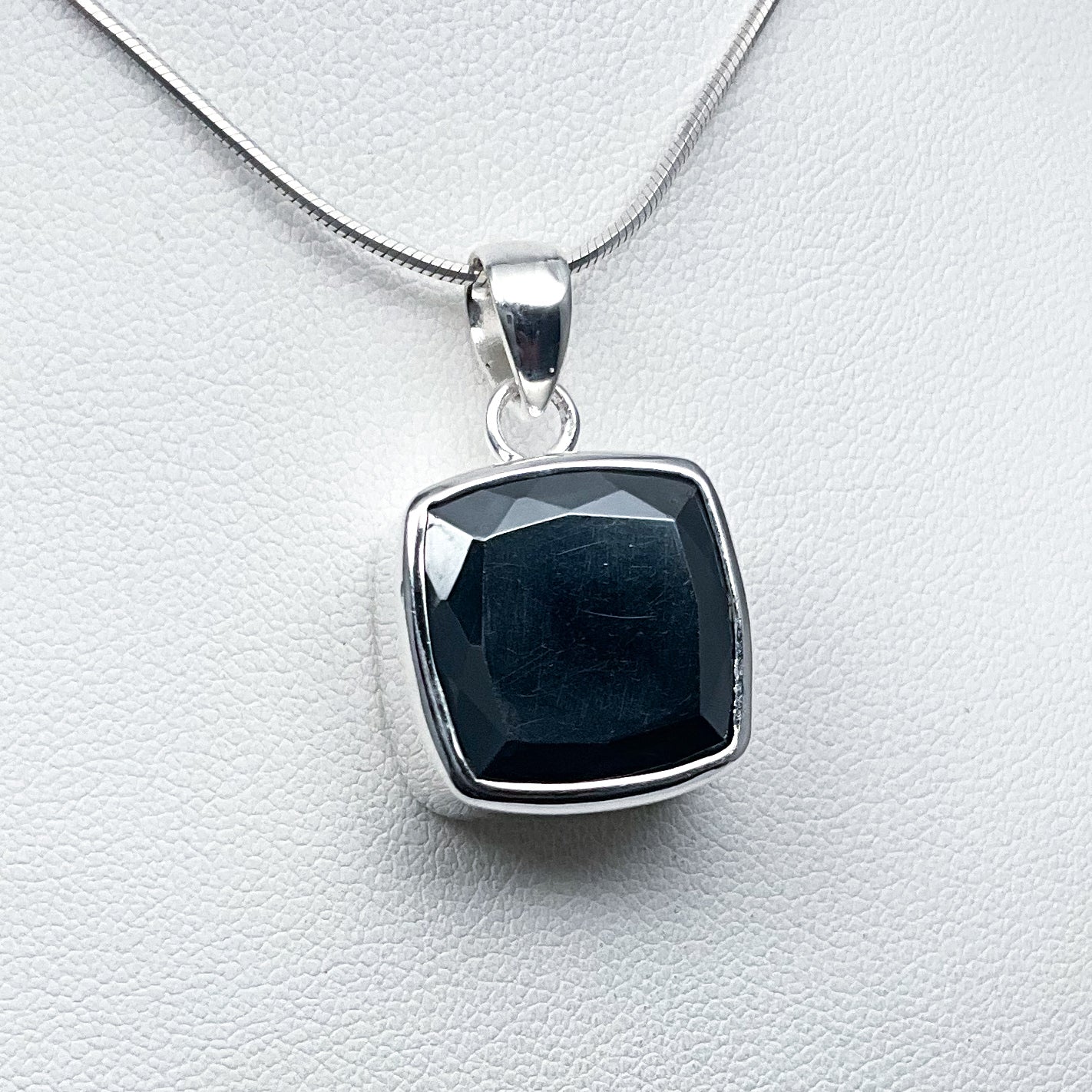 Faceted gemstone in setting: 17 mm x 17 mm x 10 mm