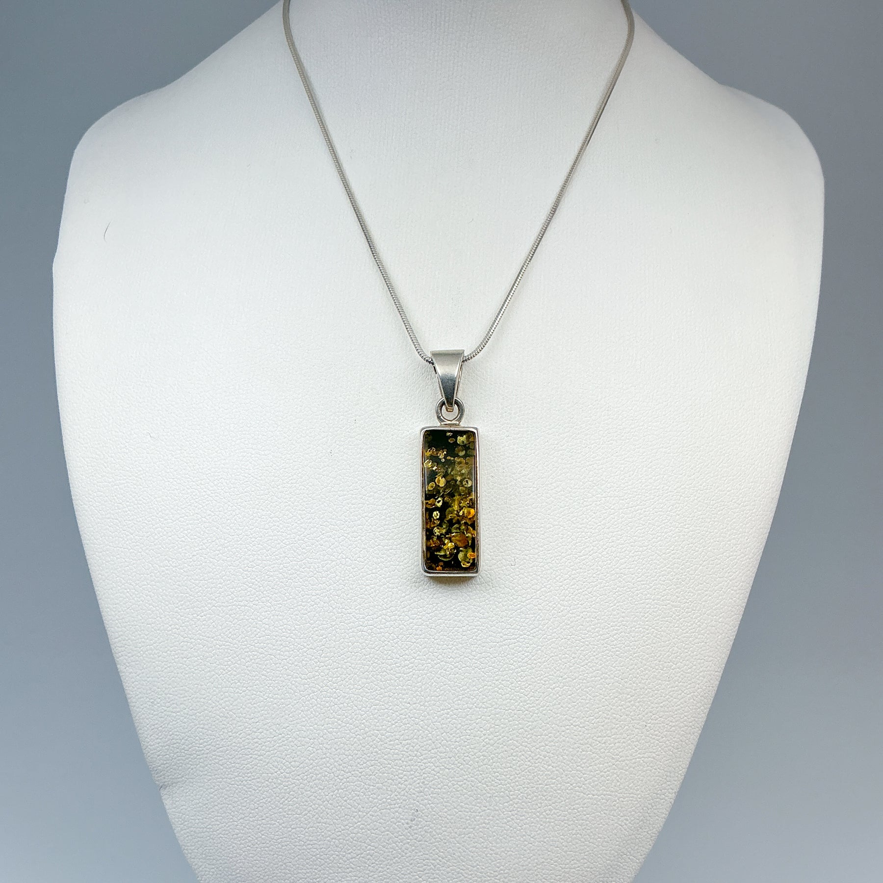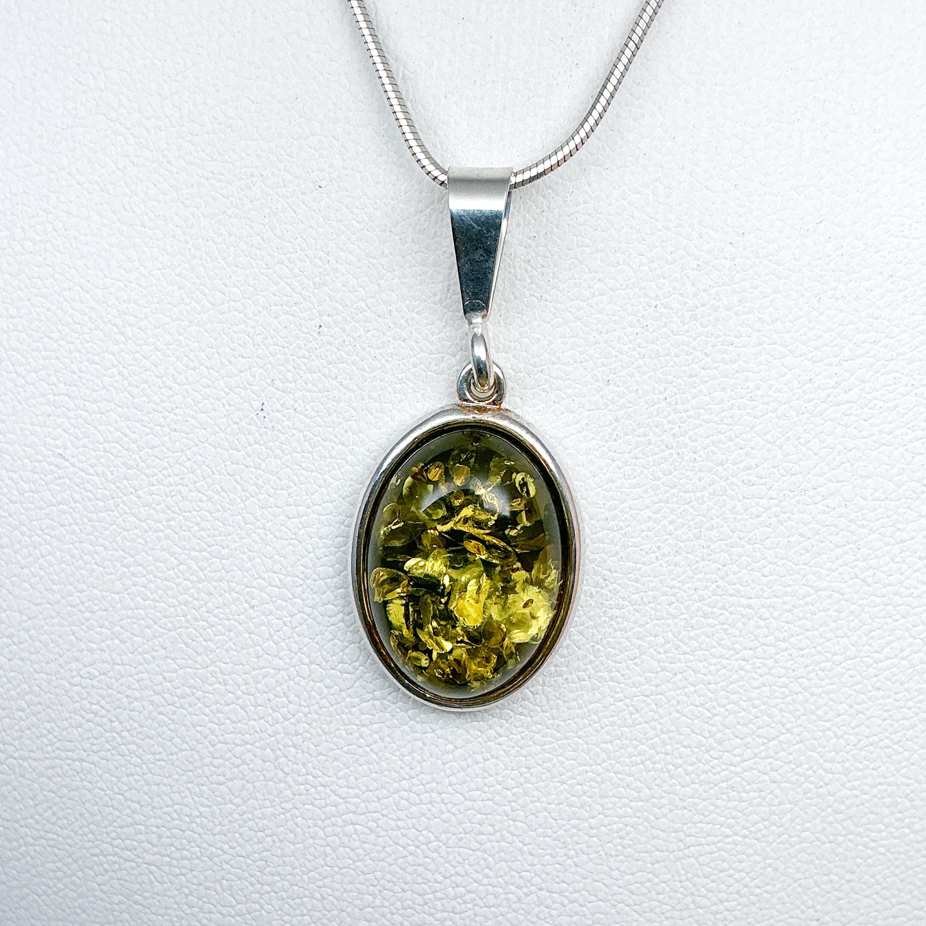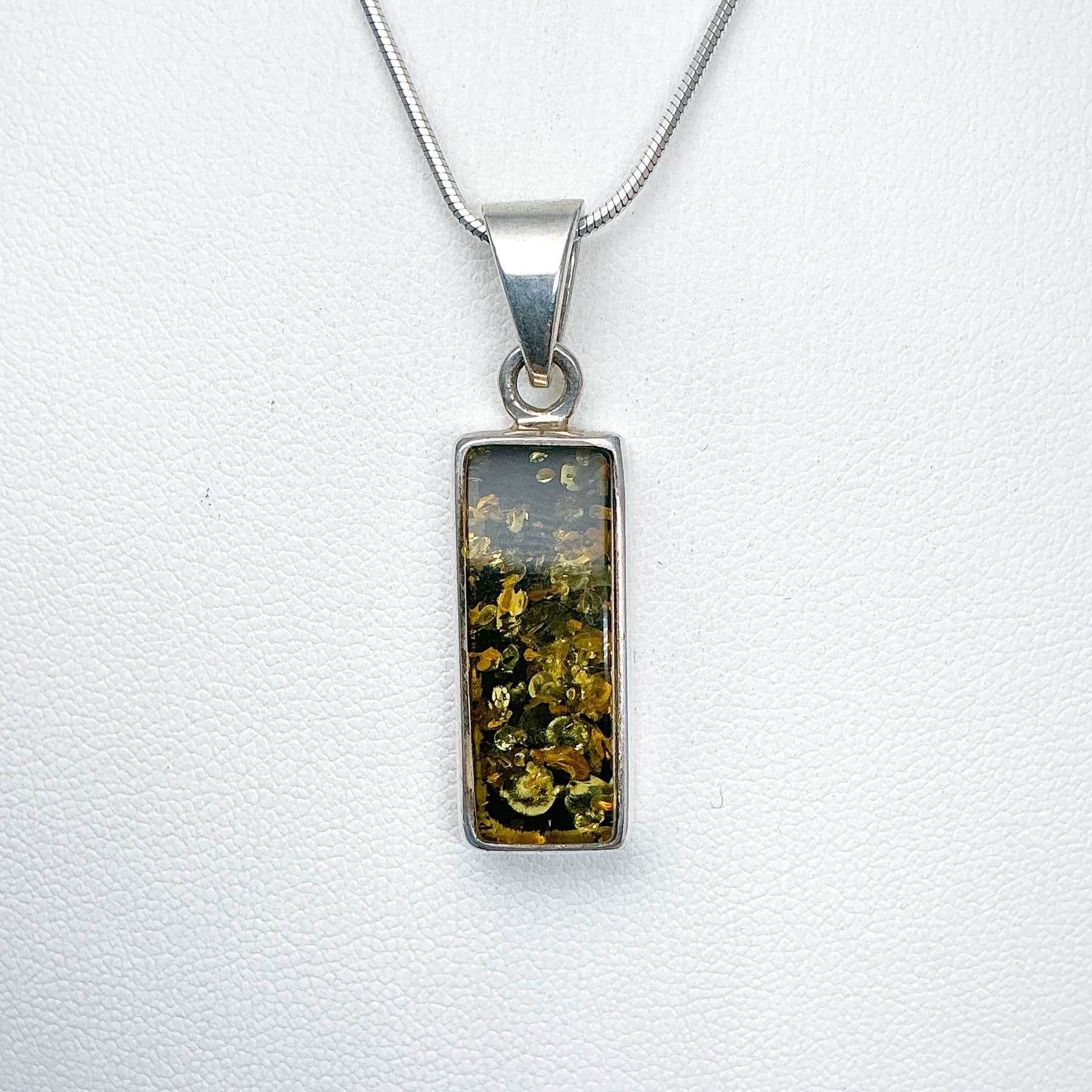 Exposure to water and other chemicals, such as lotions or perfumes, will damage it over time. If you polish the jewellery, avoid polishing the amber itself. A silver-cleaning dip should never be used with this piece.