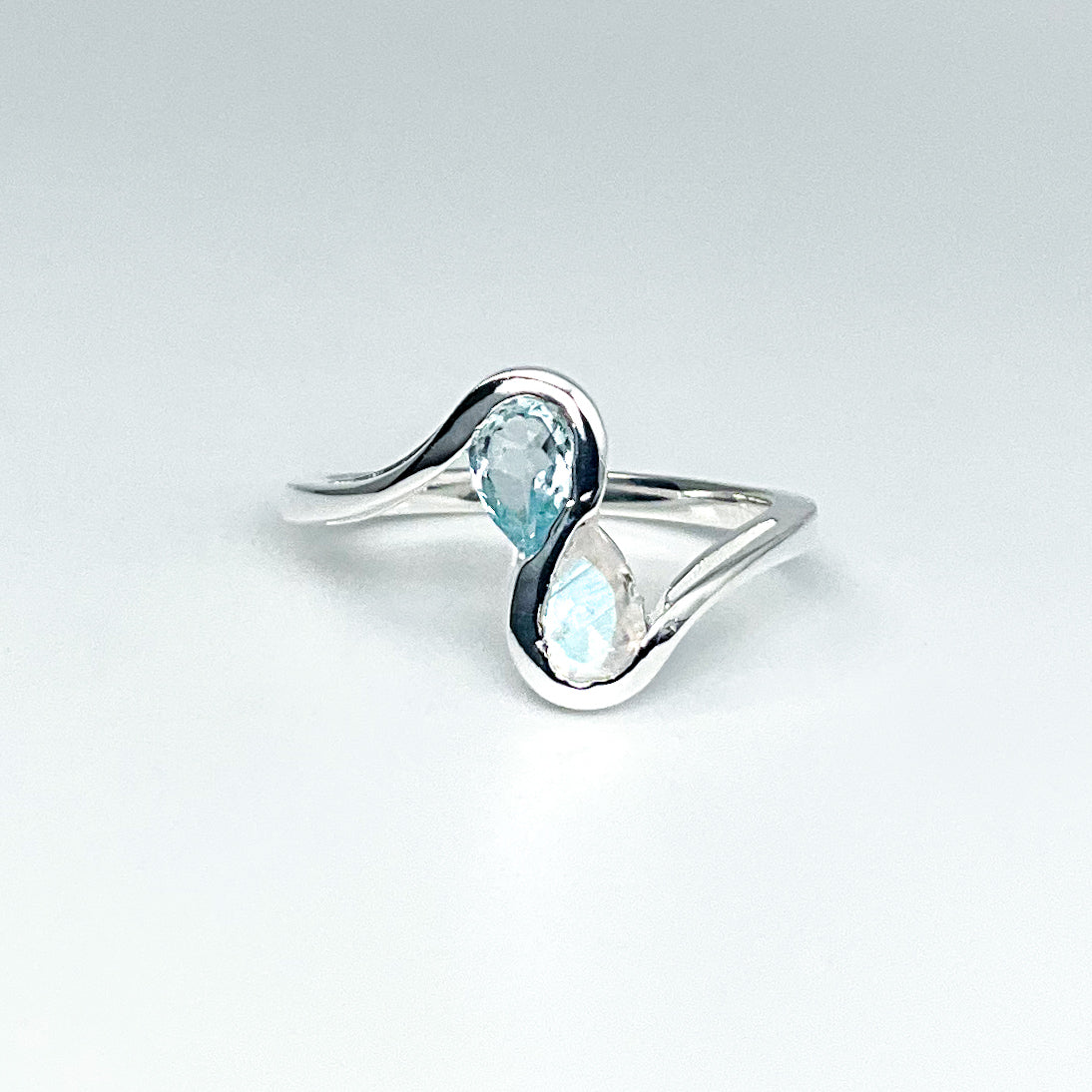 Rainbow Moonstone and Blue Topaz Ring